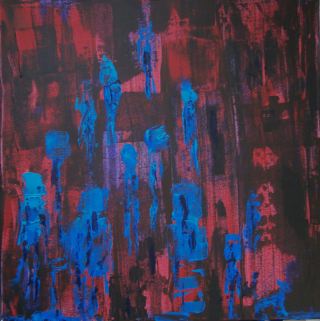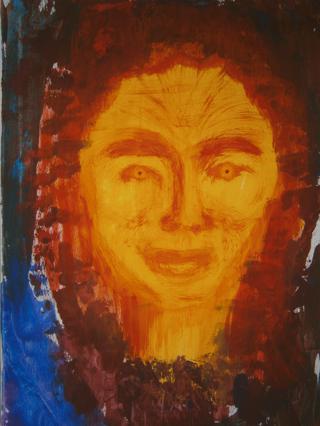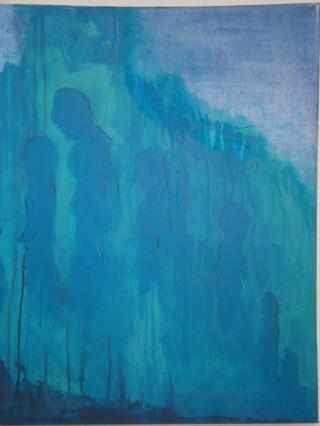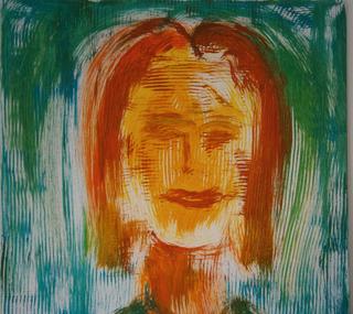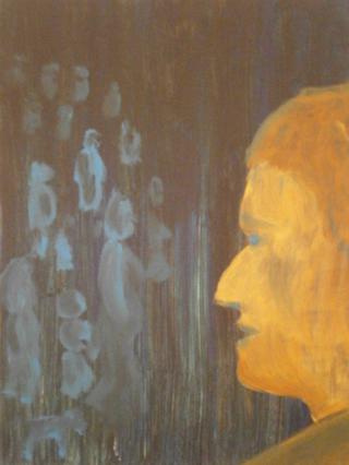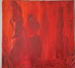 Lfd.Nr. 25 IMG_0142 2013 50x50 (dieses Bild ist noch in Ausarbeitung, im Hintergrund ein Mädchen mit langen Haaren, überlagert von einer Figur im Vordergrund) |